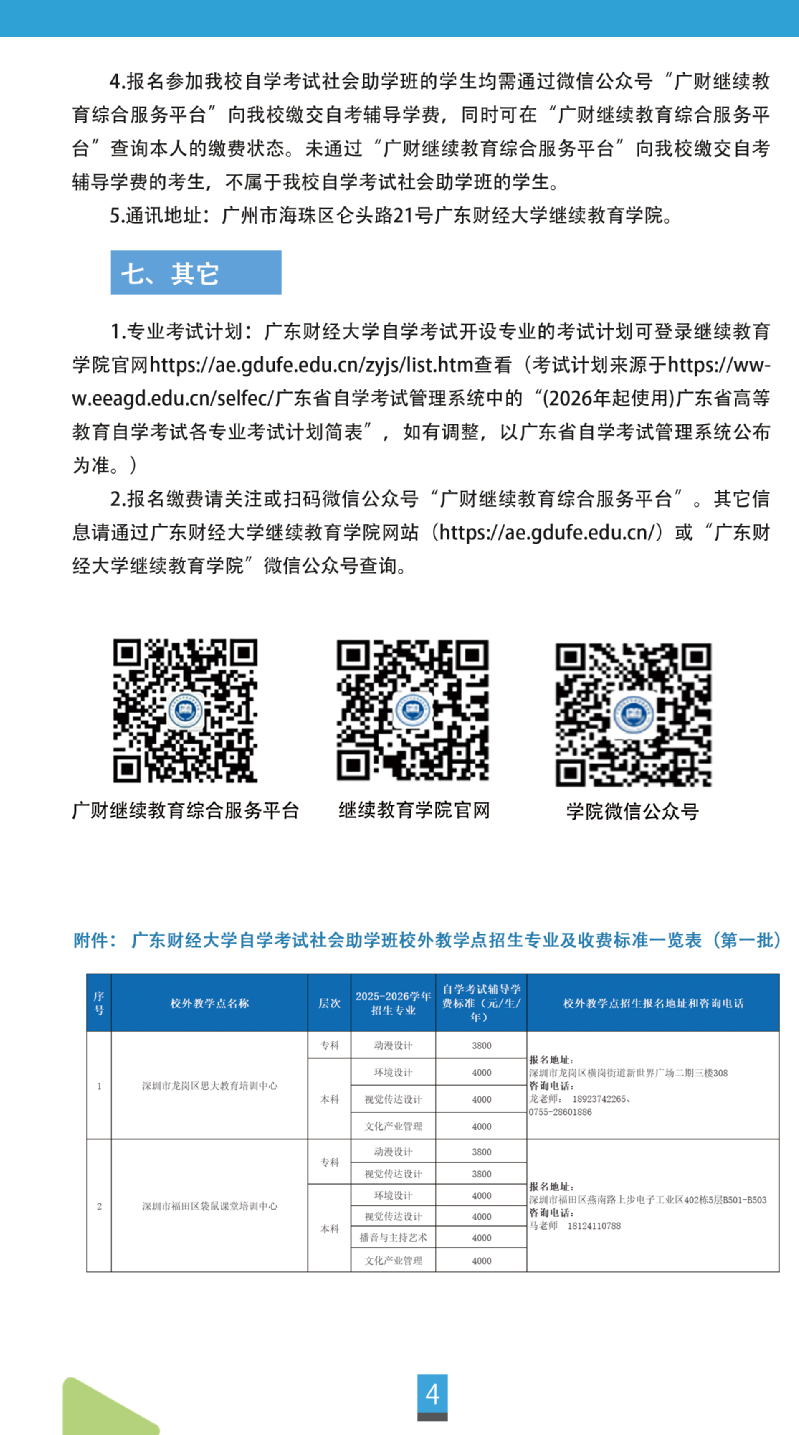 广东财经大学自学考试社会助学班2025-2026学年招生简章