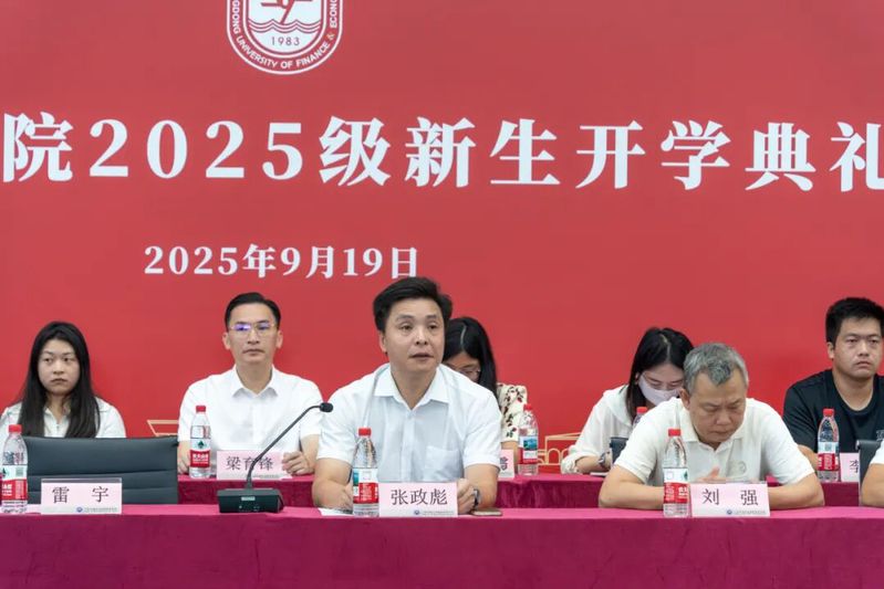 开学典礼上,雷宇代表学校向2025级新生致以热烈欢迎。他指出,2025年是“十四五”规划收官之年、“十五五”规划谋篇之年,也是学校奋力建设大湾区一流财经大学的关键之年。新时代赋予青年新使命,希望同学们勇担责任、奋发进取,争做奋进自律的“广财人”。他勉励新生:要志存高远,做有理想的人,将个人发展融入国家需要,在服务社会中实现人生价值;要勤学善思,做爱学习的人,不断提升专业能力与综合素质;要迎难而上,把每一次困惑当作思考的起点,把每一次挑战视为成长的契机;要敢于担当,做有责任感的“广财人”,以青春之我、奋斗之我,在“广财”这片沃土上书写无愧于时代的青春答卷。