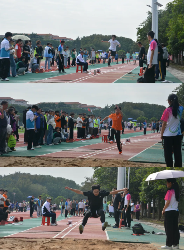 跳远、跳高场地里,运动员们舒展身体,向着更远、更高的目标发起挑战,每一次腾空与落地,都定格成最动人的画面。我院蔡泳杰获甲组男子跳远第一名,朱天赐获甲组男子三级跳远第二名,谢文杰获甲组男子跳高第一名。
