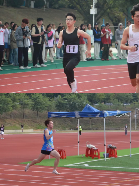 赛场之上,高潮迭起,热血沸腾!短跑赛道上,运动员们如离弦之箭一般,耳畔呼啸的风声是拼搏的号角,冲过终点线的瞬间,掌声与欢呼声响彻全场;我院吴绍鑫斩获甲组男子100米第一名,左俊豪获甲组男子100米第五名,钟泓喻获甲组男子200米第三名。