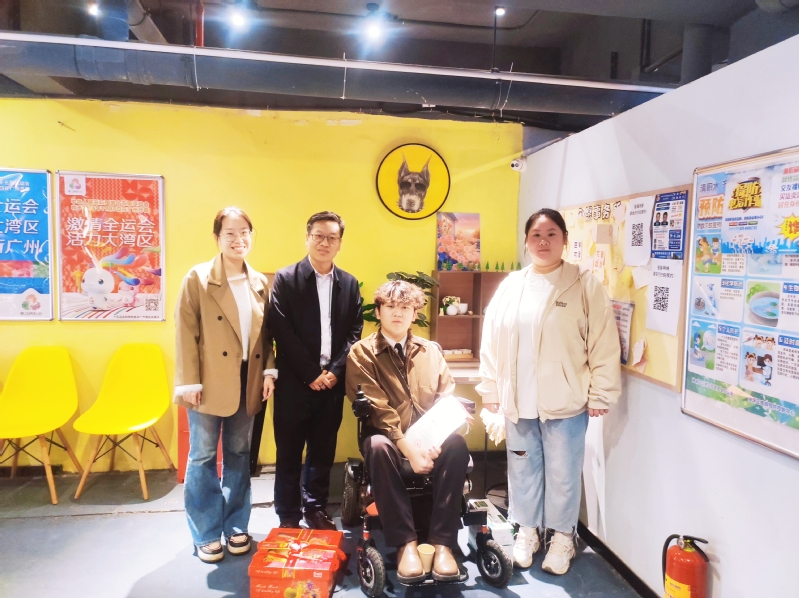 慰问中,杨勇详细了解了陈俊希的参赛经历和学习生活情况,充分肯定他不畏困难、顽强拼搏的精神,称赞他是同学们学习的榜样,生动展现了“坚定信念、追梦不止”的奋斗精神,并表示学院将继续支持他的成长。辅导员老师也与他交流了近况,鼓励他兼顾好训练与学业,争取更大进步。陈俊希对学院老师的关心表示感谢,表示这次比赛是一次宝贵的成长经历,今后将继续努力,在体育和学业上不断进步,不辜负学校的培养。