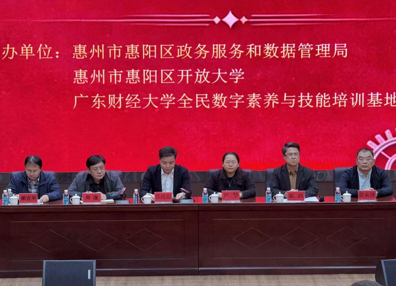 张政彪在讲话中指出,本次活动源自广东财经大学全民数字素养与技能培训基地申报的精品特色项目,依托学校百千万服务队与惠阳区政数局建立的服务对接机制,以惠阳开放大学分基地为纽带,通过专题讲座与交流,充分发挥国家级培训基地的示范作用,贯彻落实省委“1310”部署,服务“百千万工程”,切实打通数字教育服务基层的“最后一公里”。广东财经大学继续教育学院作为基地建设的核心执行单位,长期坚守“服务终身学习、推动行业发展”的办学宗旨,在财政、税务、审计、金融、数字素养等领域开展了多层次、应用型、实战化的培训项目,积累了丰富的办学经验,形成了鲜明特色优势,此次校地携手合作,聚焦数据治理与安全合规核心问题,期望助力惠阳区乃至惠州全域提升数据治理效能,为区域数字经济高质量发展注入强劲动力。