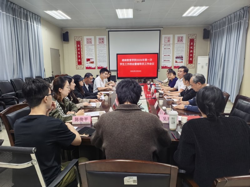 为统筹推进学院2026年春季学期开学初学生工作,确保新学期学生工作安全、平稳、有序,2月28日下午,继续教育学院在善学楼7楼会议室召开2026年第一次学生工作例会暨辅导员工作会议。学院党总支书记张政彪、副书记李兰平、自学考试中心相关工作人员,各项目部学工负责人及全体辅导员参加会议。会议由李兰平主持。