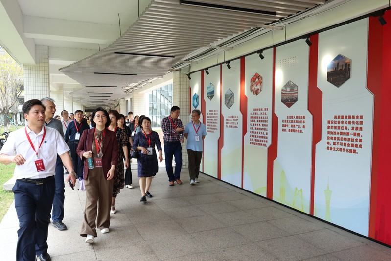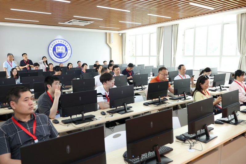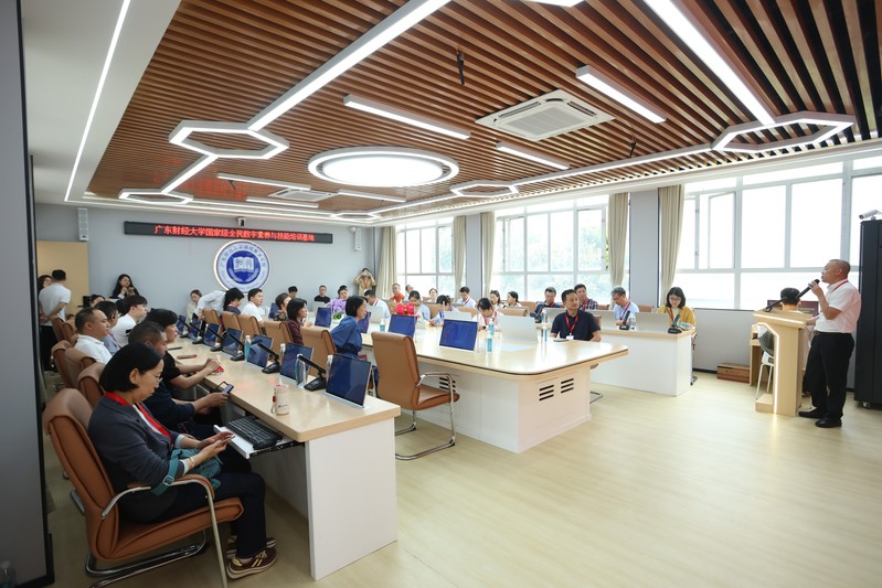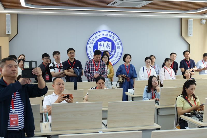 在广东财经大学,代表们参观了学校的思政长廊、校史馆及继续教育学院(培训学院、全民数字教育学院)新建成的数字创新综合实验室。在综合实验室,代表们听取学院副院长刘强介绍了实验室的建设思路;见证了学校慕课课程平台、全景素质教育学习平台、一体化教学管理平台、AI课程制作平台、实验室综合管理平台;沉浸式体验了集分布式桌面云系统、智慧教学管理平台、物联网环境系统、AI数字评价等系统于一体的智能、高效的数字化学习空间;现场体验了如何开展教学、标准化考试、研讨、培训、直播录播、专家线上讲座等多个功能;并围绕继续教育转型、终身学习体系构建、数字教育赋能等核心议题与学院相关负责人展开深入交流,分享办学经验、对接合作资源,共同探讨继续教育高质量发展的新路径。