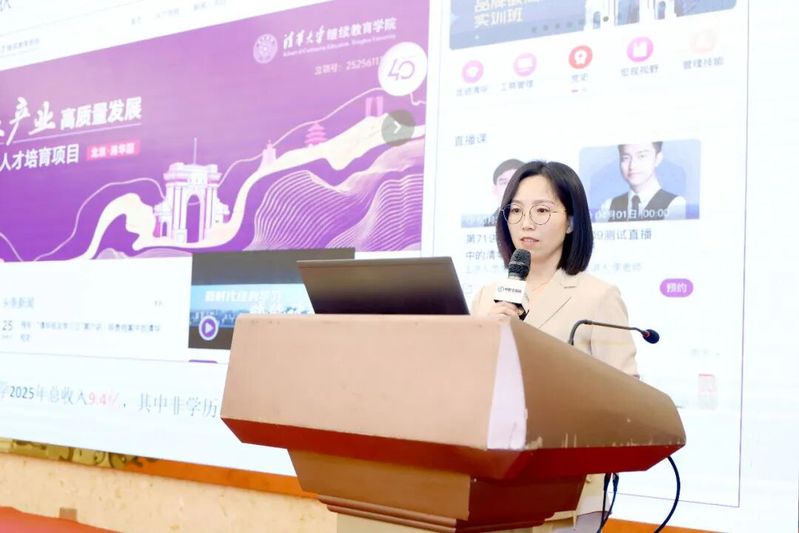 北京网梯科技发展有限公司终身教育事业部总监王佳静以“数智化助力高校非学历‘管理—办学—营销’体系化组织力提升”为题作了报告。她介绍网梯科技是一家深耕高校继续教育领域26年的全场景技术服务商,目前已合作全国378 家高校。她指出,当前多数高校面临着带班效率低、资源分散、数据孤岛等共性问题,为此网梯科技提出“开班小程序+综合管理平台”一体化解决方案,打通了招生营销、带班实施、管理决策全流程,实现学员报名、班主任工作、委托方监管、管理层决策的数字化协同。该方案能自动沉淀师资、学员、课程等组织资产,通过数据驾驶舱与 AI 智能体赋能精准决策,以灵活合作模式助力高校将分散能力转化为体系化组织力,为非学历教育高质量发展提供技术支撑。